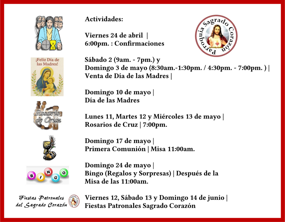 Para conocer las fechas, requisitos y coordinar, llame a la Oficina Parroquial.