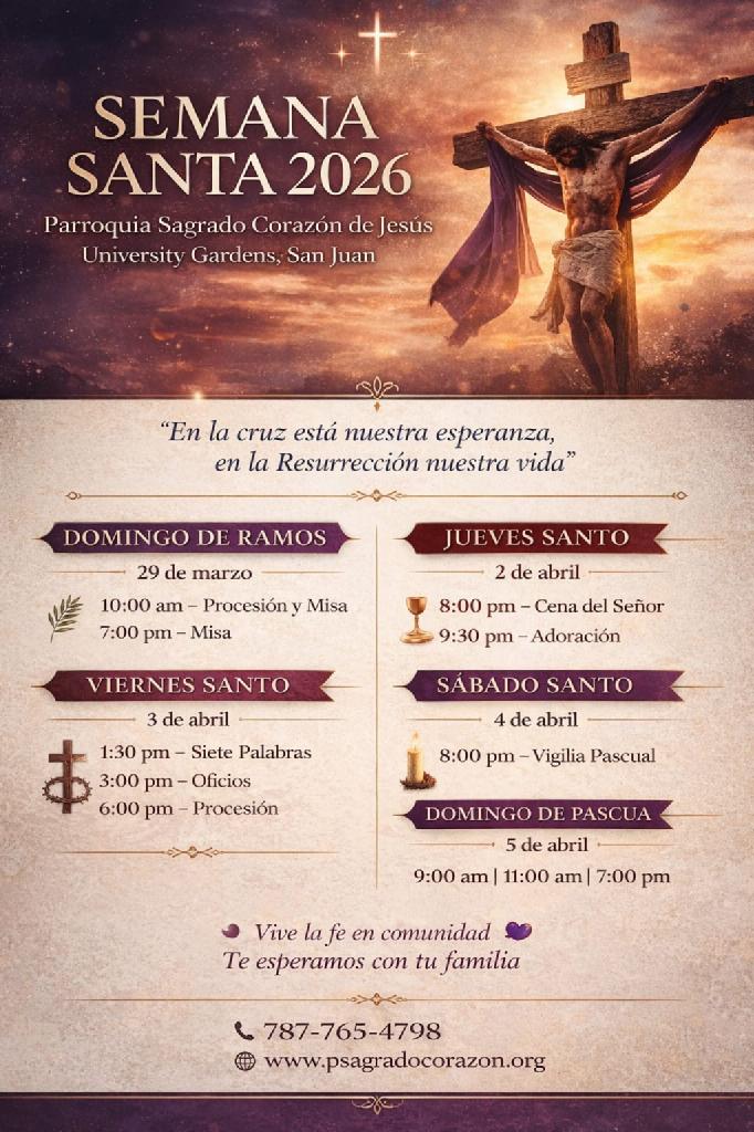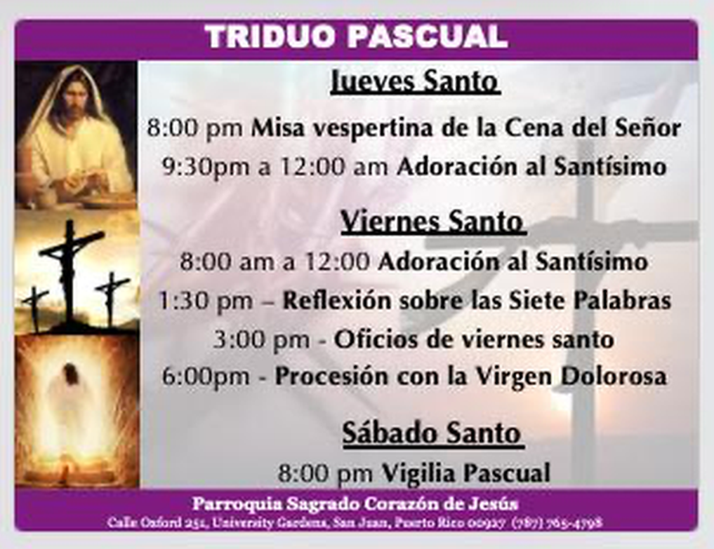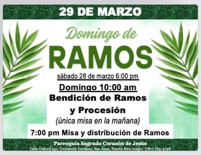 Domingo: 9:00am., 11:00am. y 7:00pm.