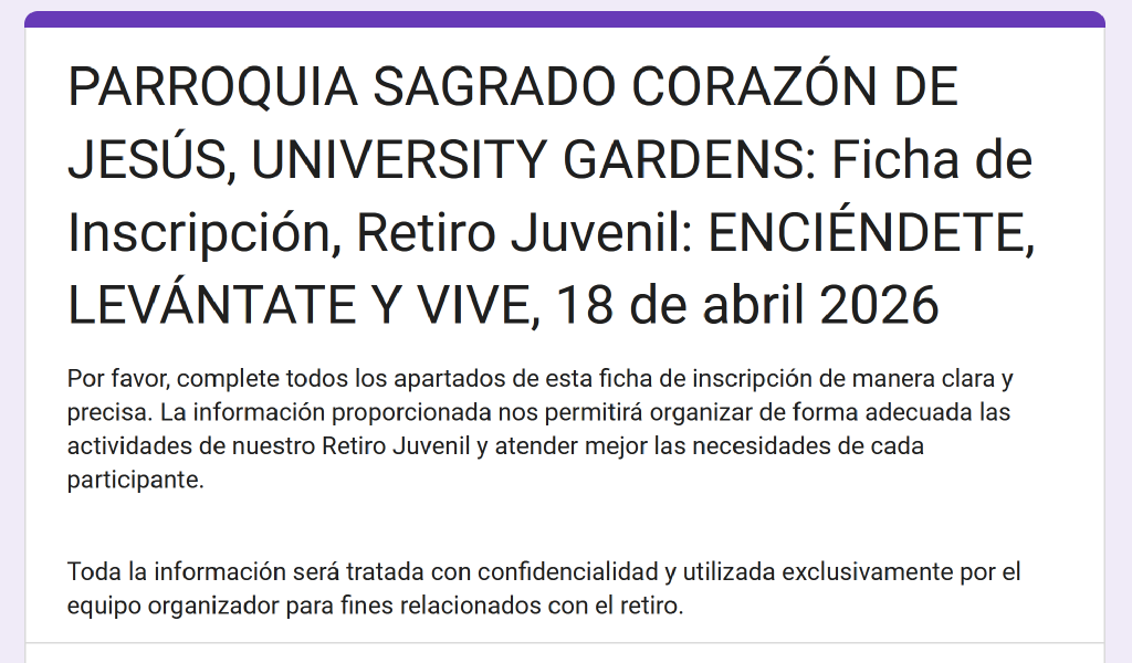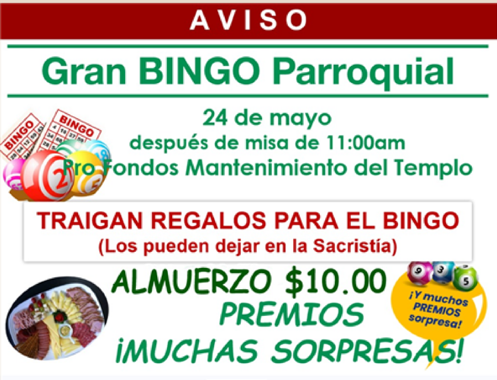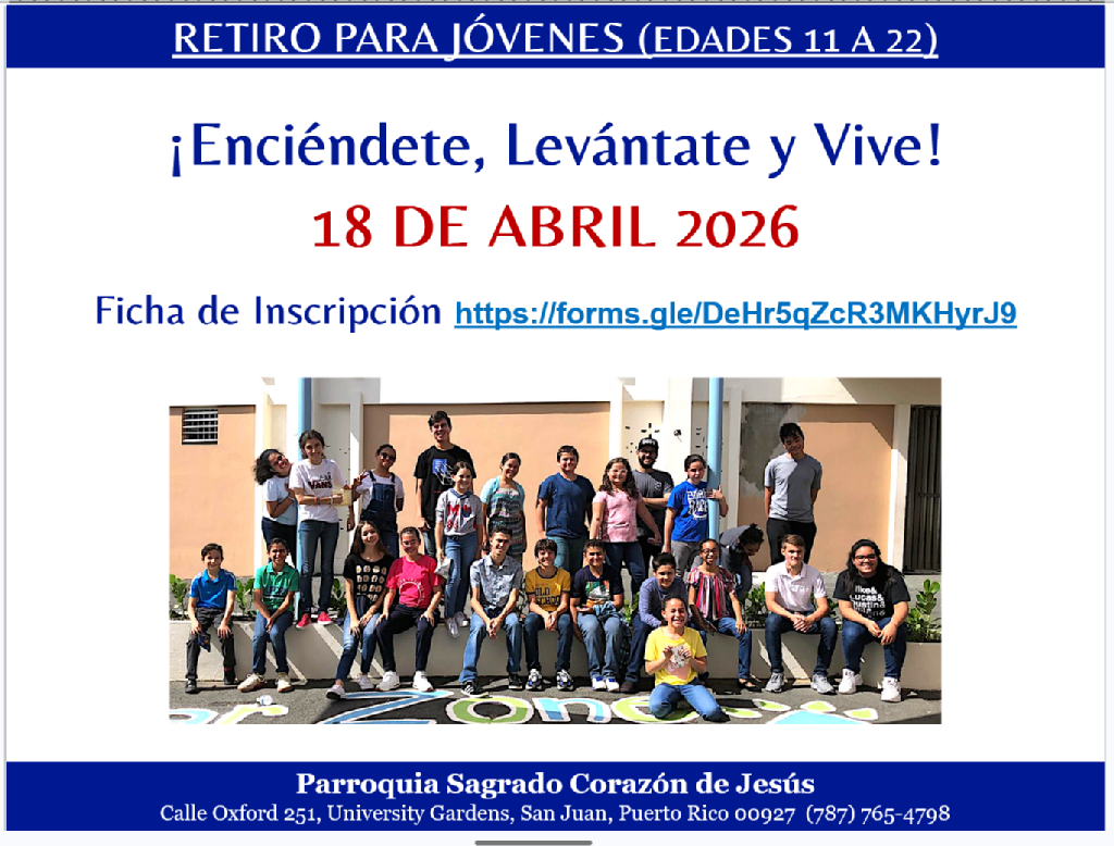Para niños de 8 años en adelante., llame a la Casa Parroquial.