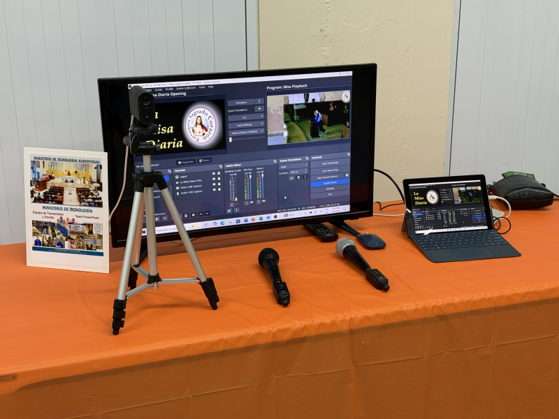 Demostración del proceso de producción y transmisión de las Misas, parte del Ministerio de Tecnología